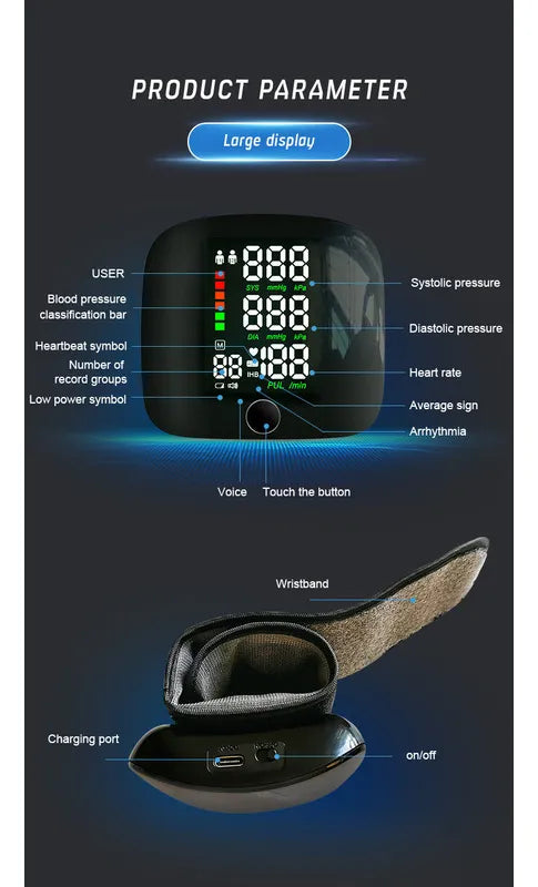 Mide tu presión arterial y frecuencia cardíaca de forma rápida y precisa desde la comodidad de tu hogar. Su diseño de muñeca ajustable y giratorio 360° permite una medición cómoda sin necesidad de quitarte las mangas.