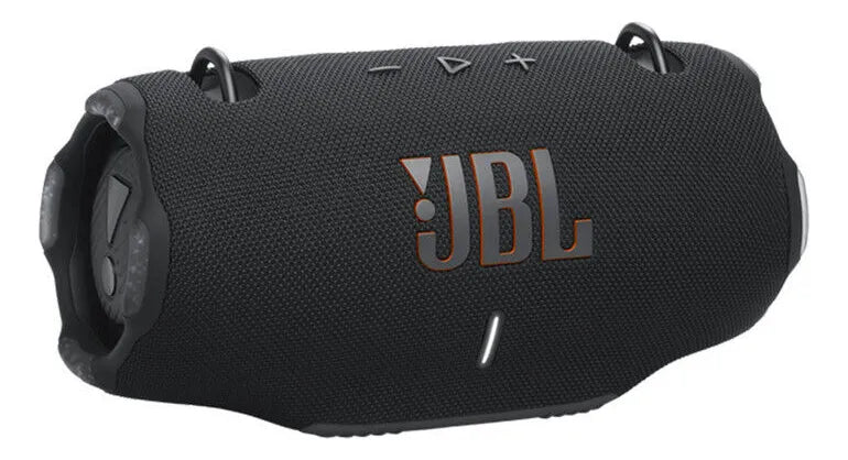 ¡Es hora de vivir con volumen!¡Es hora de vivir con volumen! El altavoz portátil JBL Xtreme 4 resistente al agua ofrece un sonido JBL Pro de última generación con una dinámica increíble, incluso a máximo volumen, gracias a sus dos potentes woofers y dos altavoces de agudos. Los radiadores pasivos JBL de doble bombeo te ofrecen unos graves más profundos. ¿Quieres llevar tu música al exterior? La práctica correa para el hombro lo hace fácil, mientras que los resistentes protectores de goma y la clasificación IP67, resistencia al agua y al polvo hacen que un chaparrón repentino o un chapuzón en el lago no detengan la diversión. Cuando llegue el momento de crear una experiencia de audio aún mayor, combina dos Xtreme 4 para obtener sonido estéreo. O para tu próxima fiesta, utiliza Auracast para conectar el Xtreme 4 con cualquier altavoz portátil JBL compatible, para que tus amigos que estén descansando junto a la piscina se relajen con la misma lista de reproducción que los que chatean en interiores. 24 horas de reproducción y una cómoda batería externa para tu dispositivo significan que no lo tendrás que recargar hasta la mañana. Todo esto, además, está hecho con plástico reciclado y tejido reciclado. El JBL Xtreme 4 te ofrece un sonido emocionante en cualquier lugar.